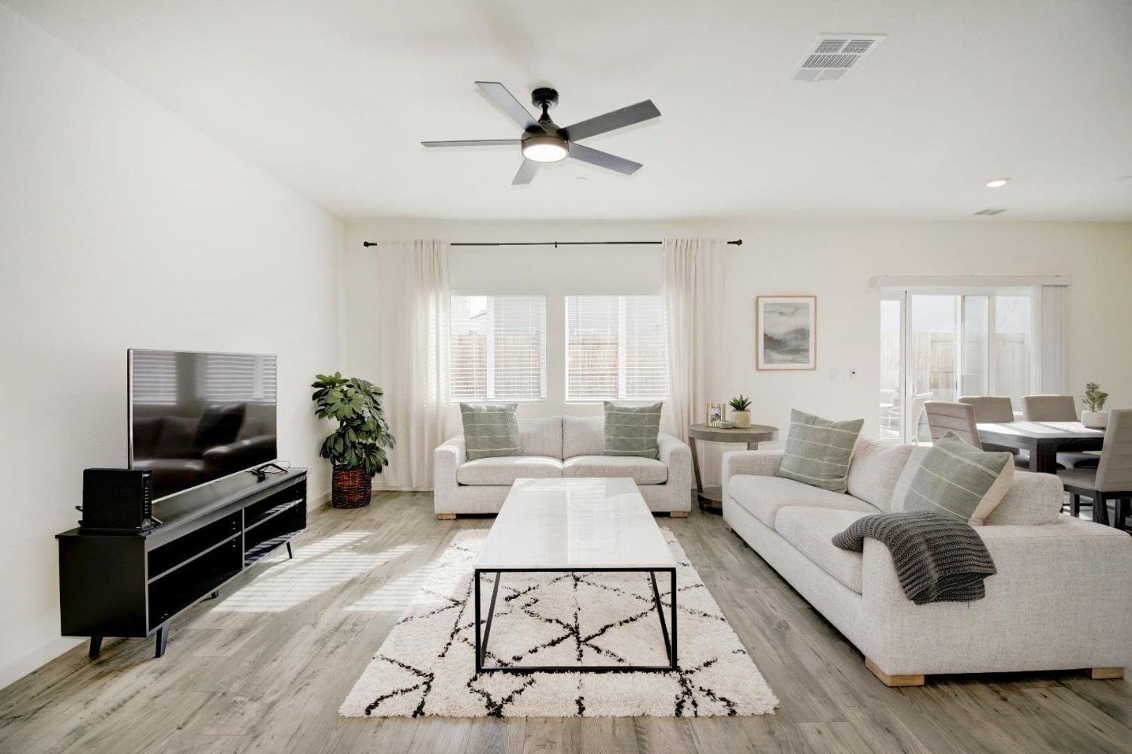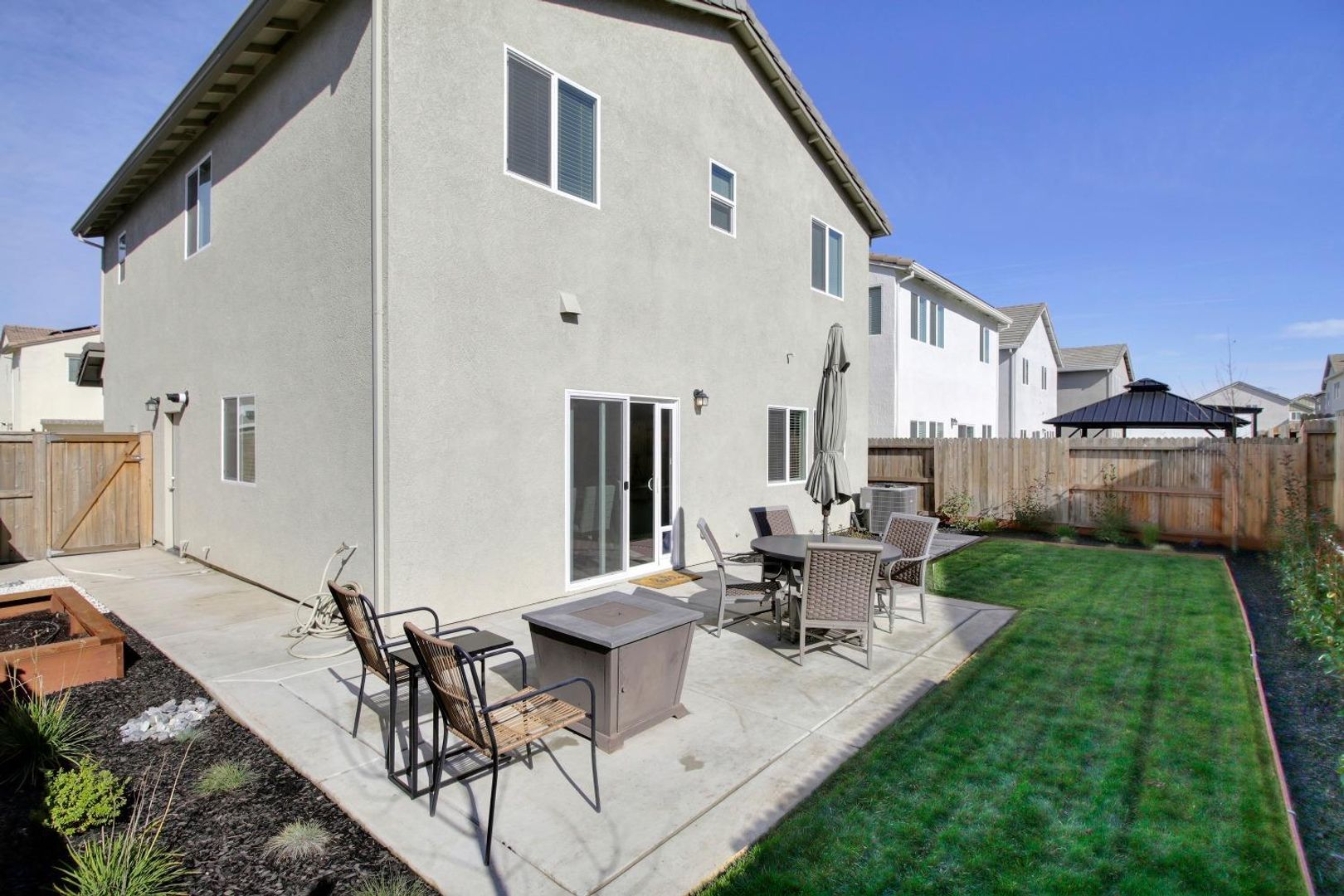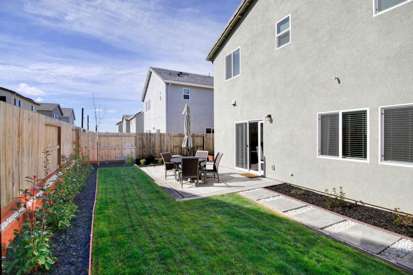 Step outside to a large, freshly landscaped backyard, offering a peaceful outdoor retreat perfect for relaxing or entertaining guests.