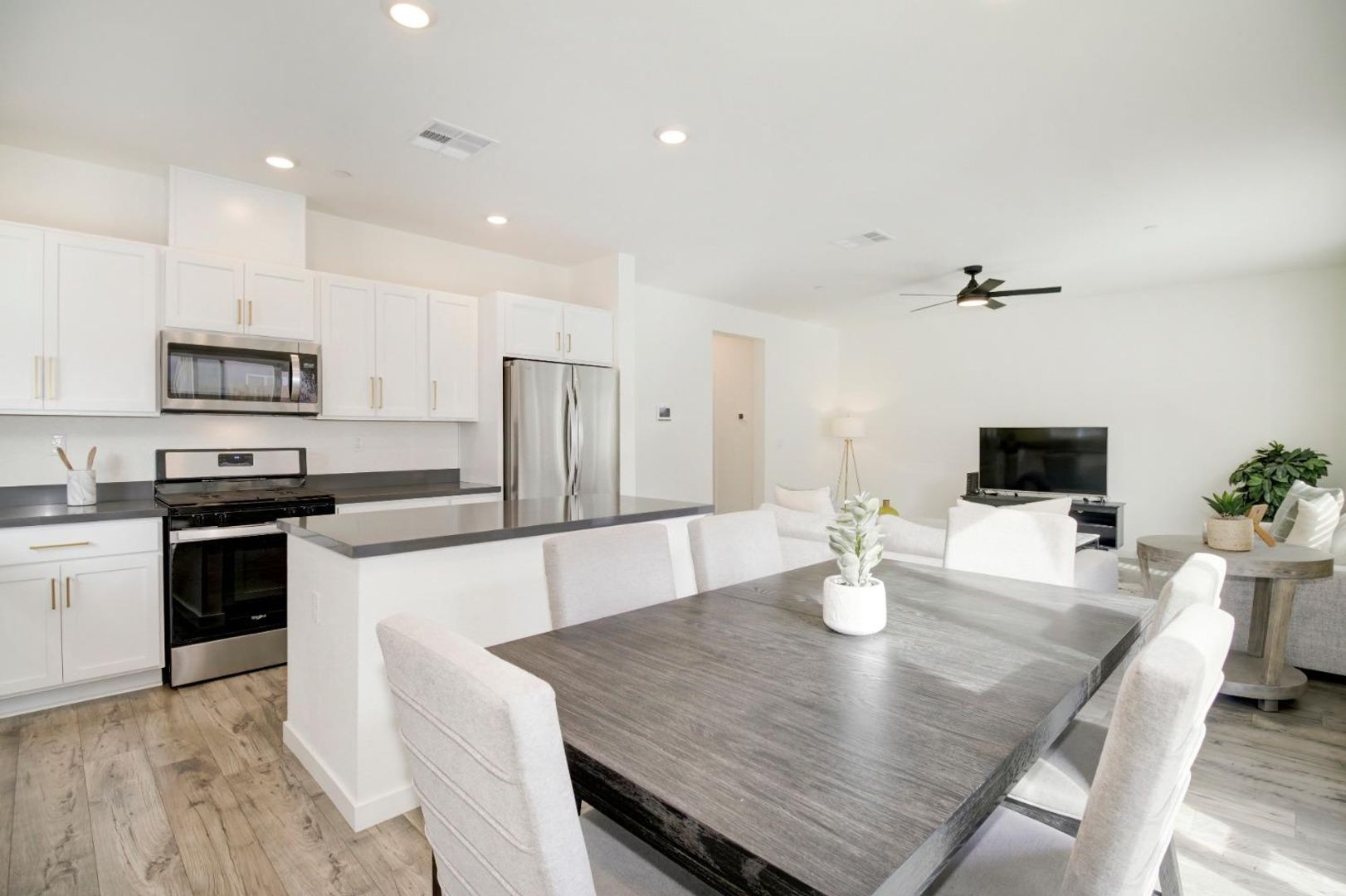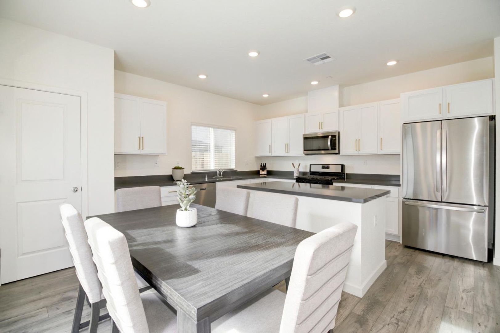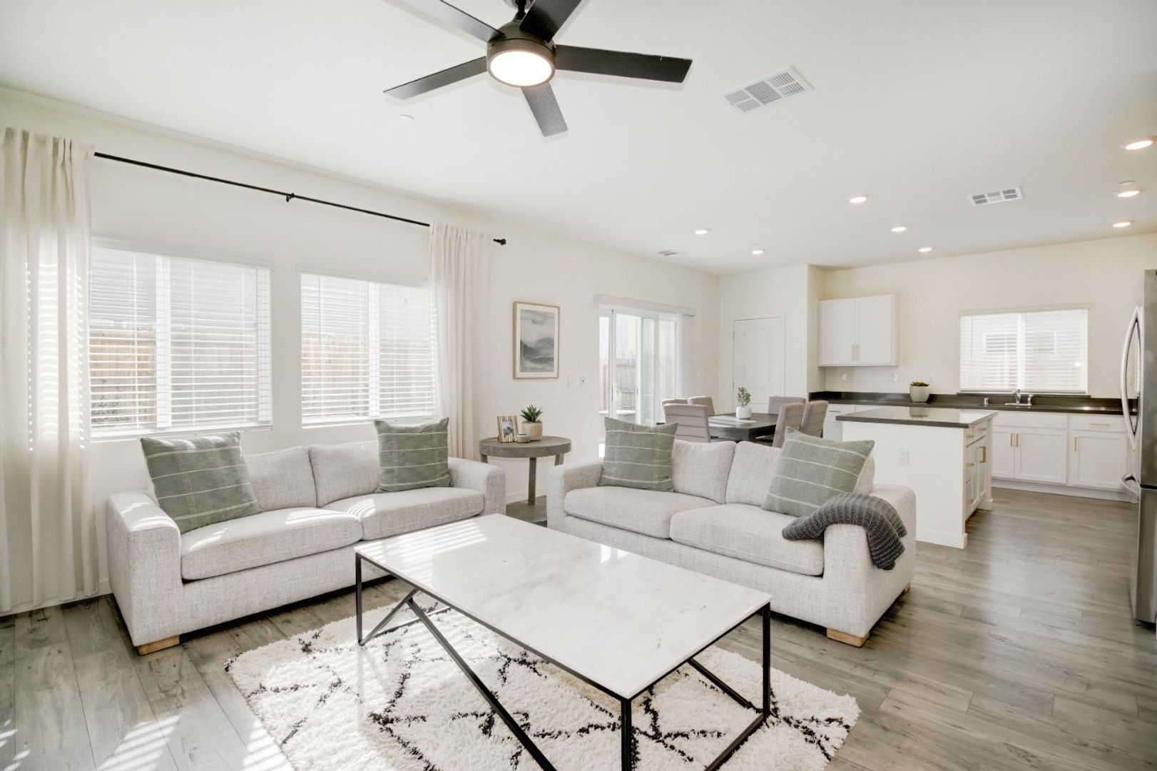 Step inside to a bright and open great room concept on the main level, creating an inviting space for both relaxing and entertaining. The entire first floor features stylish wood laminate flooring, while the second floor is finished with upgraded carpet for added comfort.
