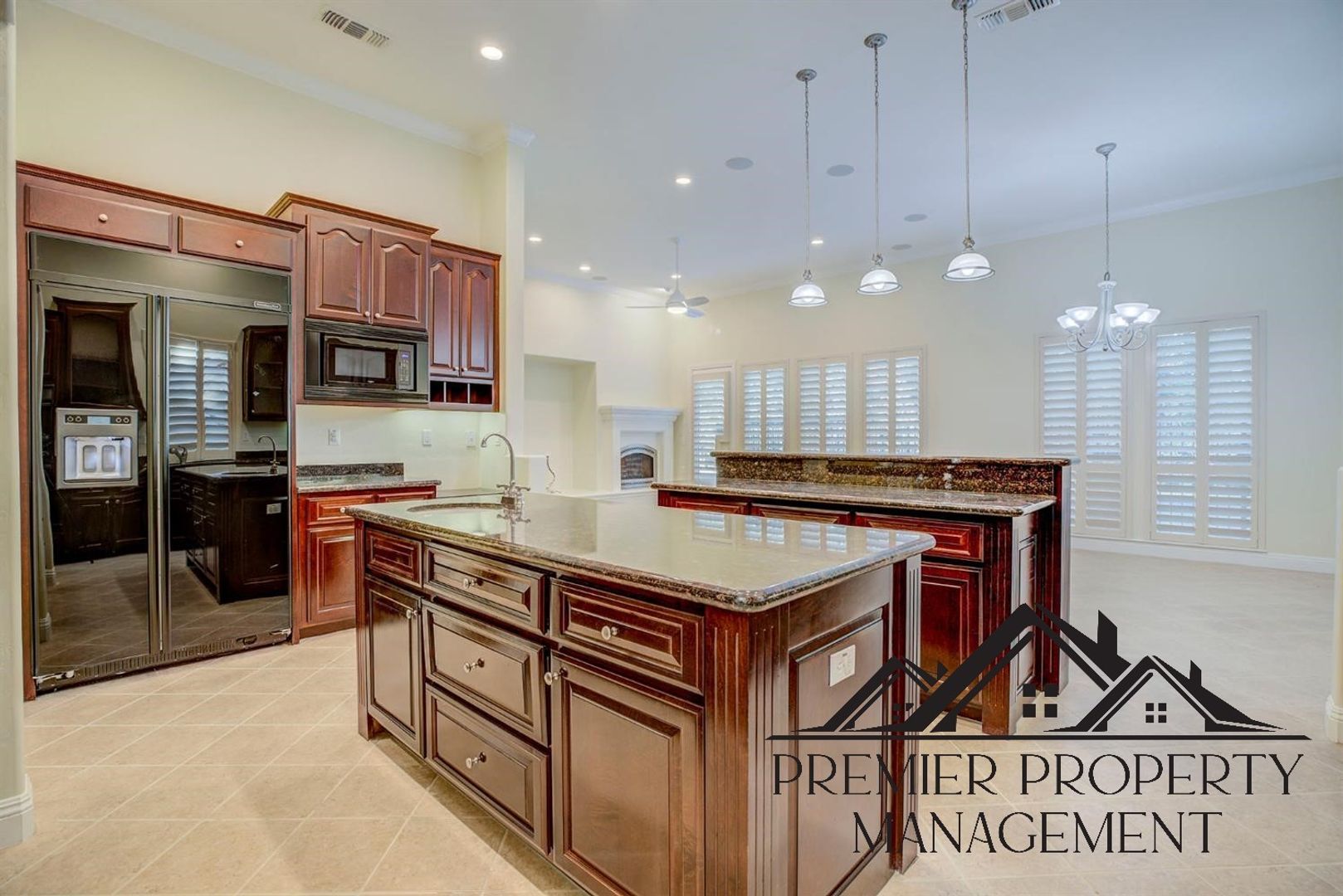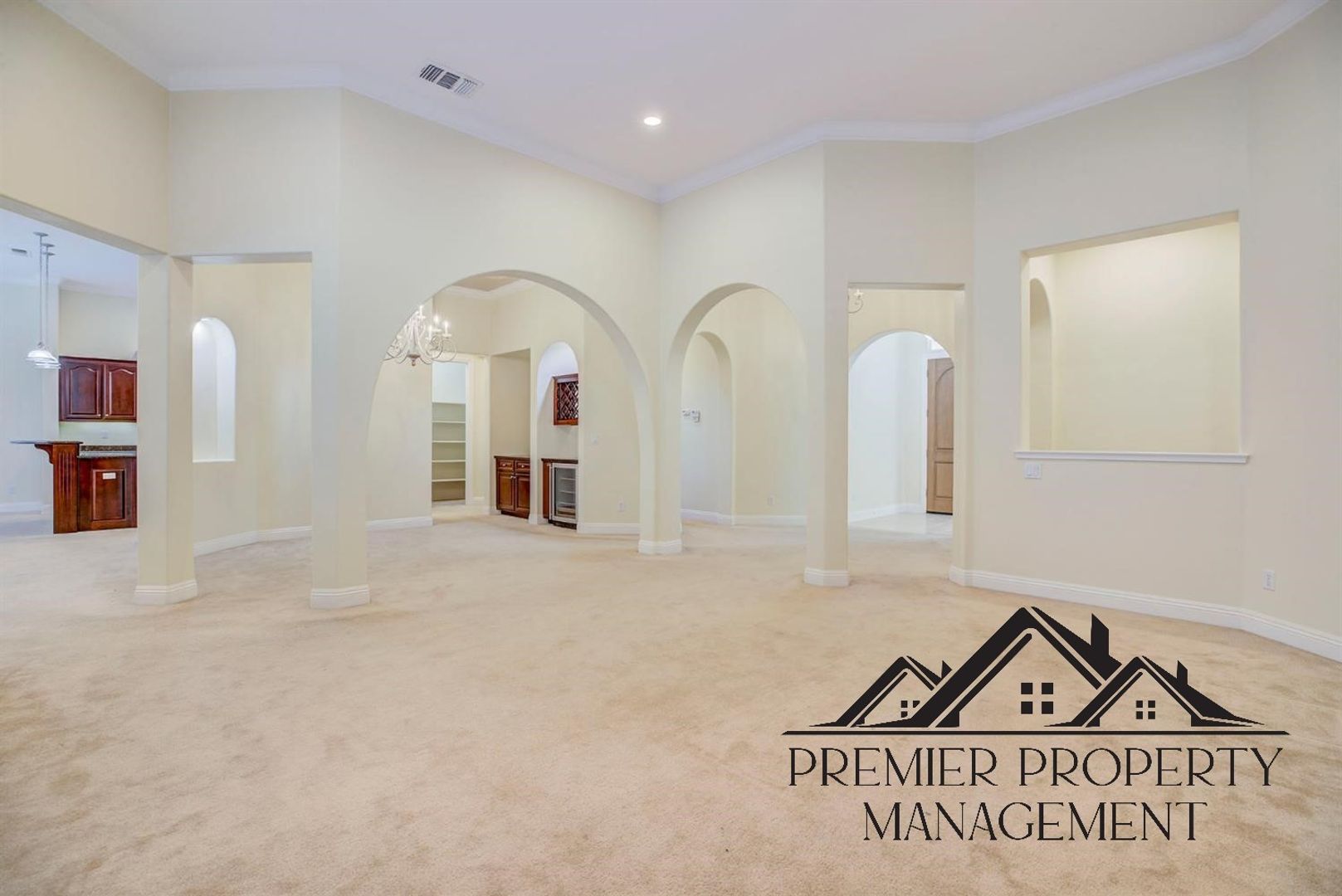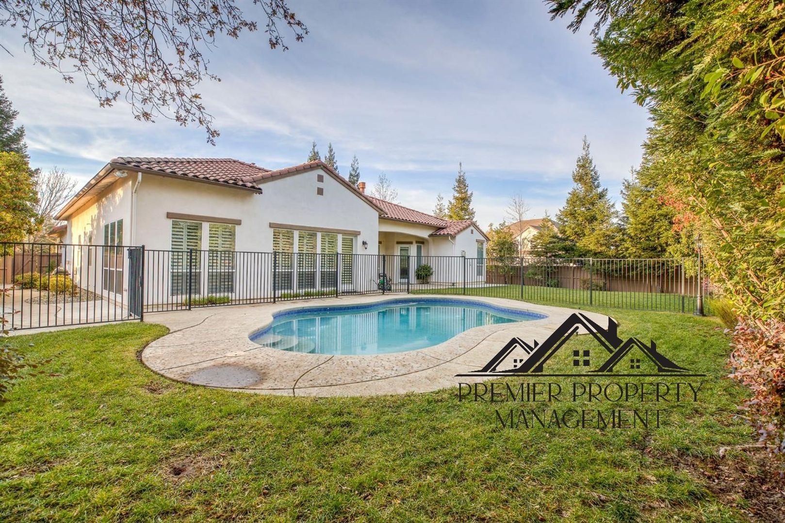This exquisite home available for rent is located in upscale Morgan Creek in West Roseville. Hard to find SINGLE STORY with over 3500 sq feet. Four oversized bedrooms plus an office. Cathedral ceilings throughout. Large master suite with retreat, fireplace, crown molding, and surround sound speakers throughout the entire home. Master bath has double vanities, luxury shower, large soaking tub and two master closets. Enormous kitchen includes two islands, built-in refrigerator, oven, microwave and TWO (yes TWO) dishwashers. Fabulous yard on half acre with built in pool! Gated community with guarded gate and access to private lake and golf course.