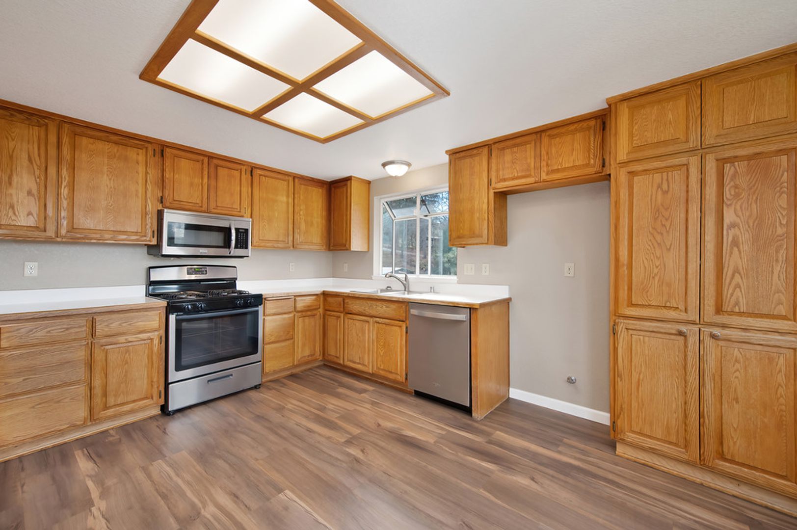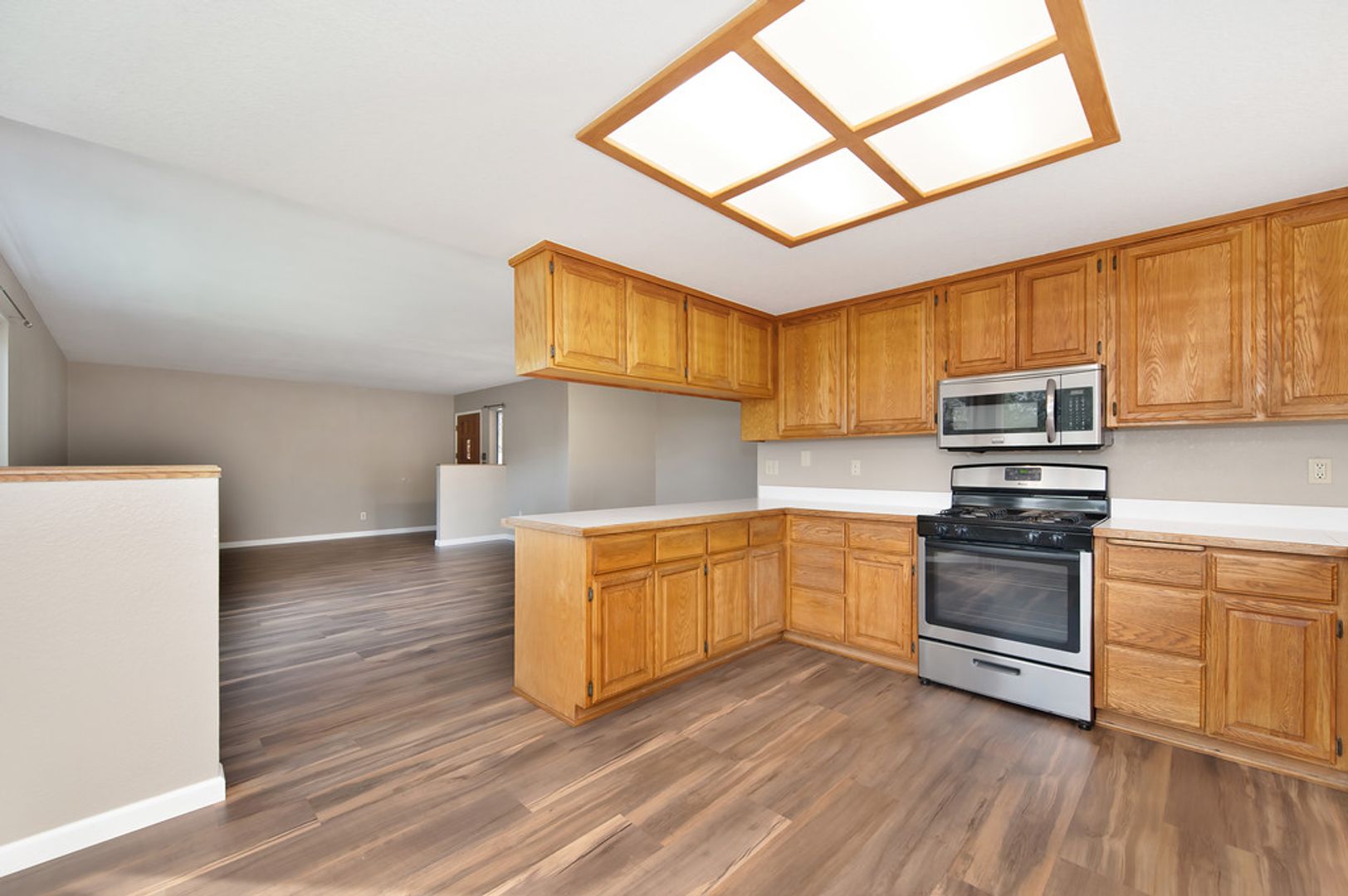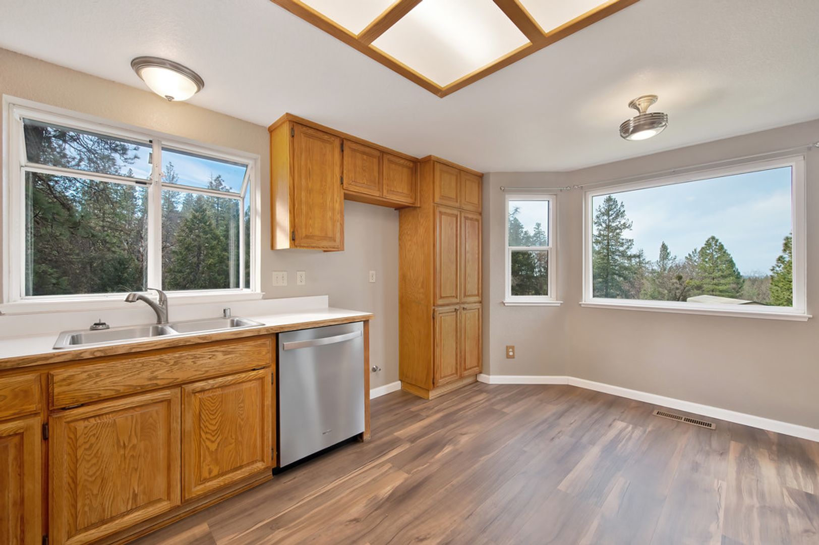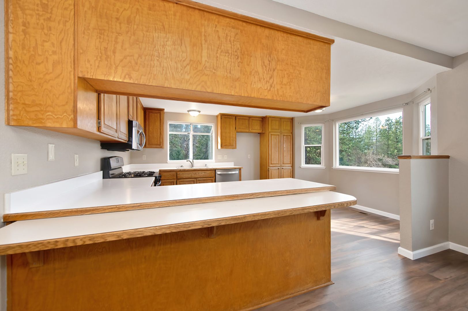 Step inside to find an open concept living space bathed in natural light, with laminate floors throughout that add warmth and character. The large kitchen is perfect for family meals and entertaining, while the airy living room offers a relaxing atmosphere.
