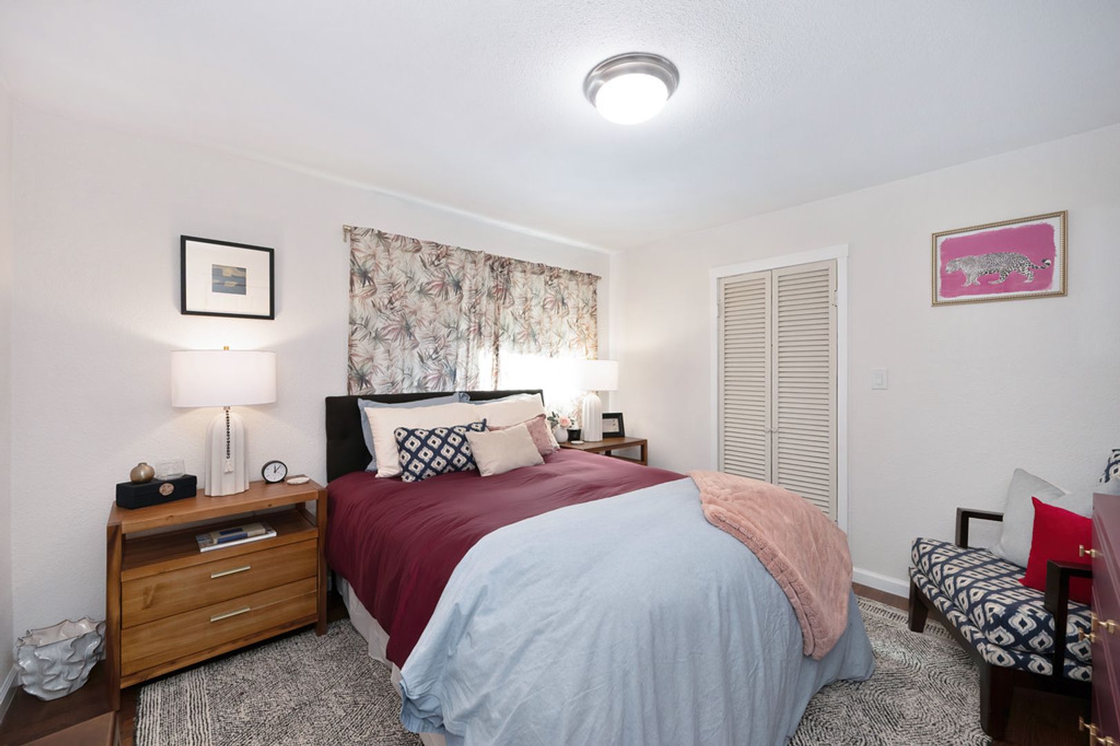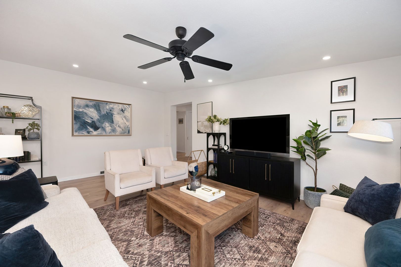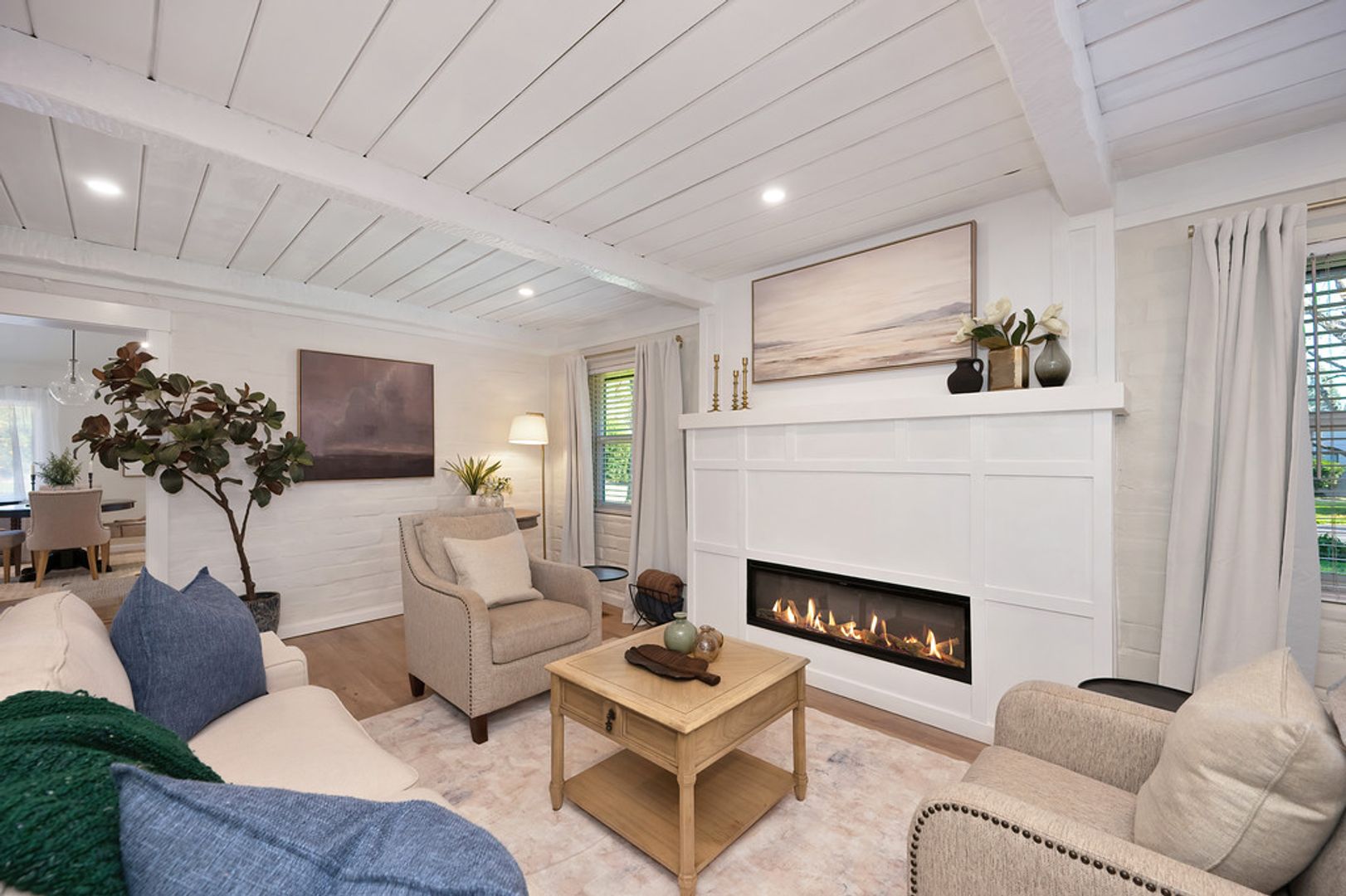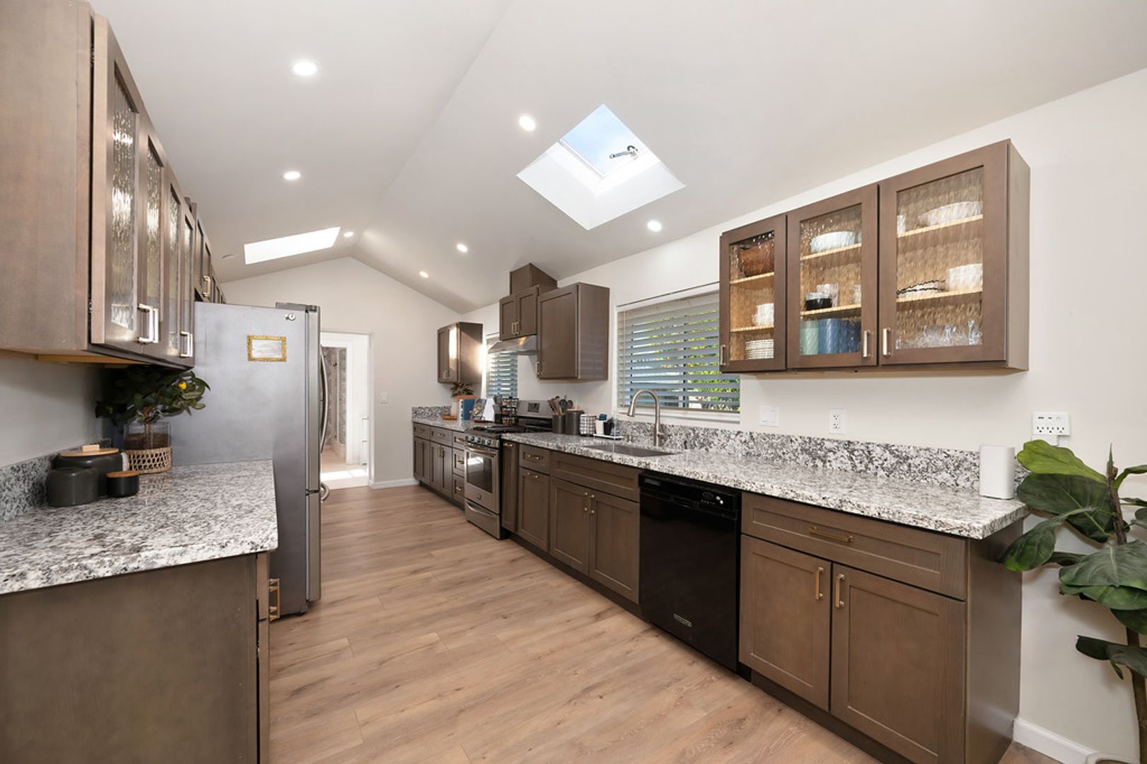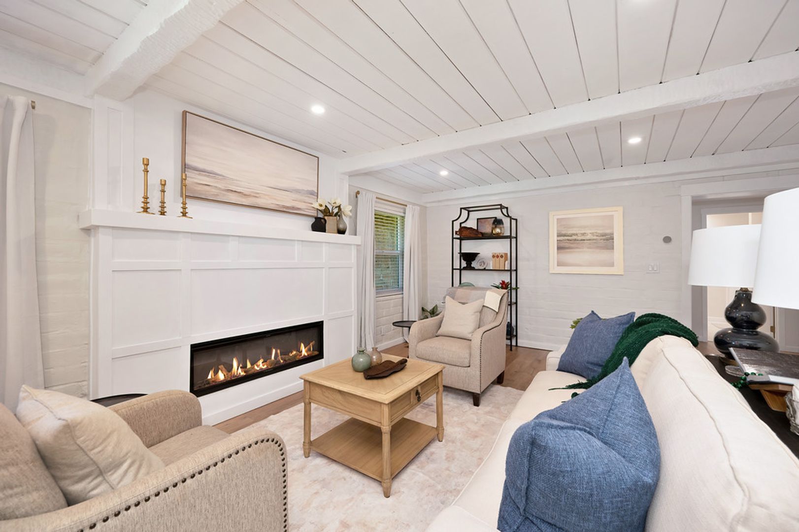 The open, light-filled floor plan features designer flooring, a beautifully updated kitchen with premium cabinetry, sleek countertops, and modern appliances, perfect for both everyday living and entertaining. Both bathrooms have been completely remodeled with spa-inspired finishes, offering a clean, luxurious feel.