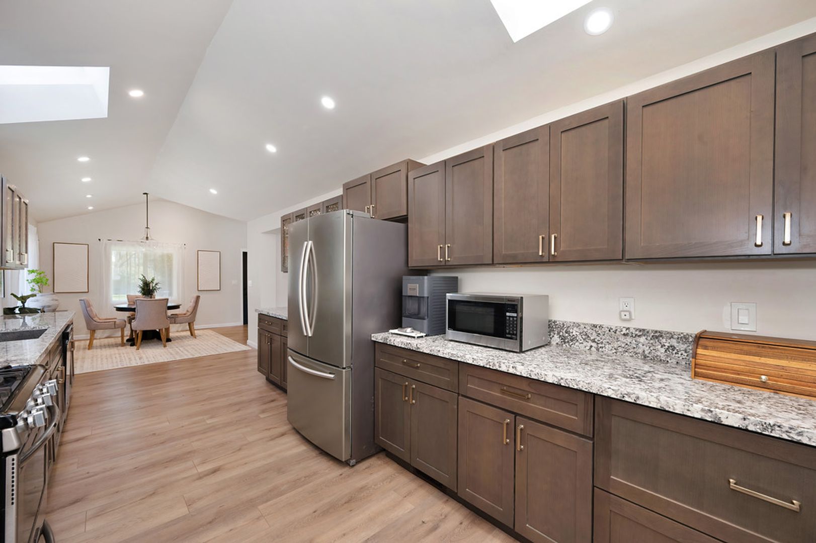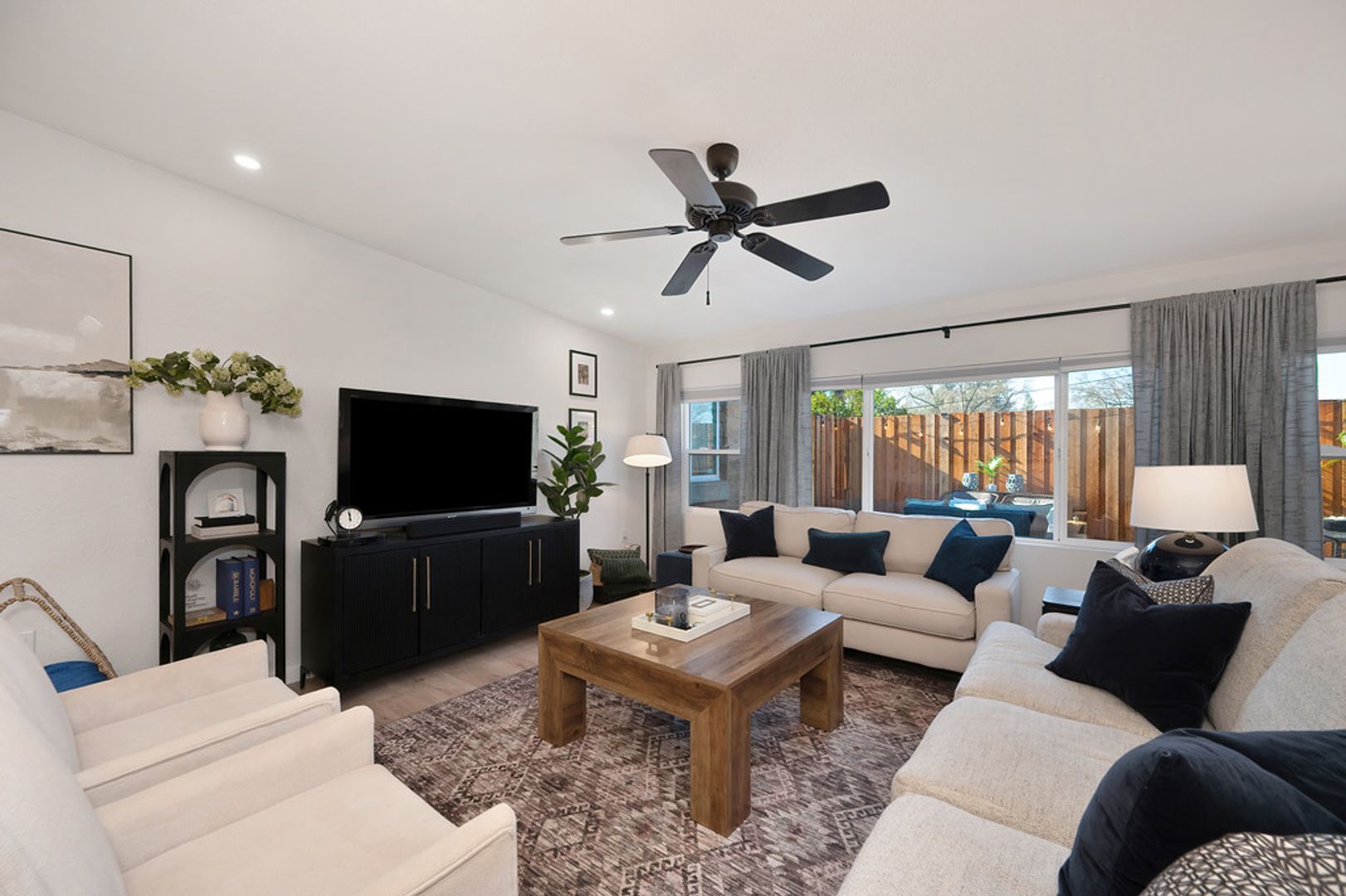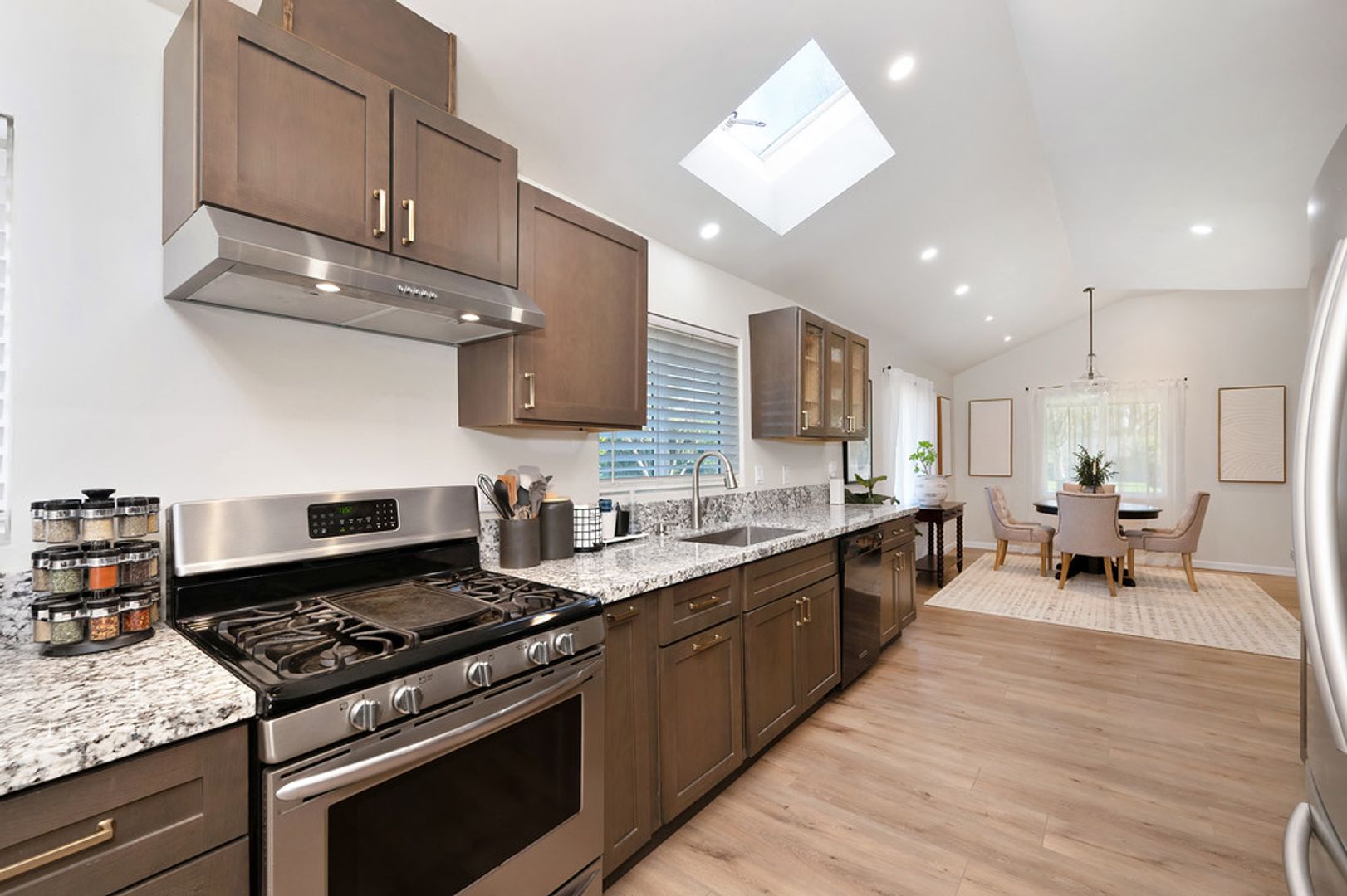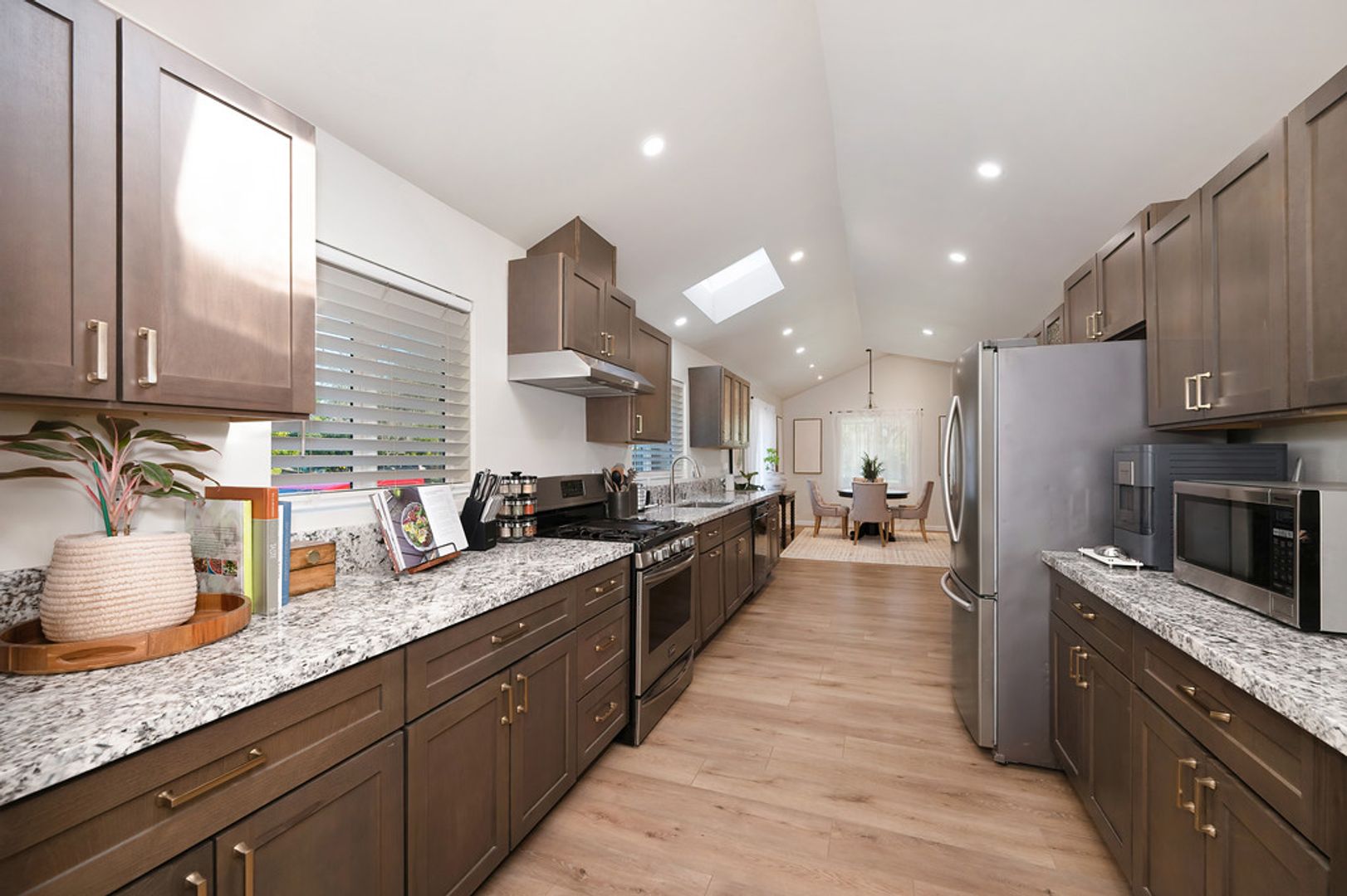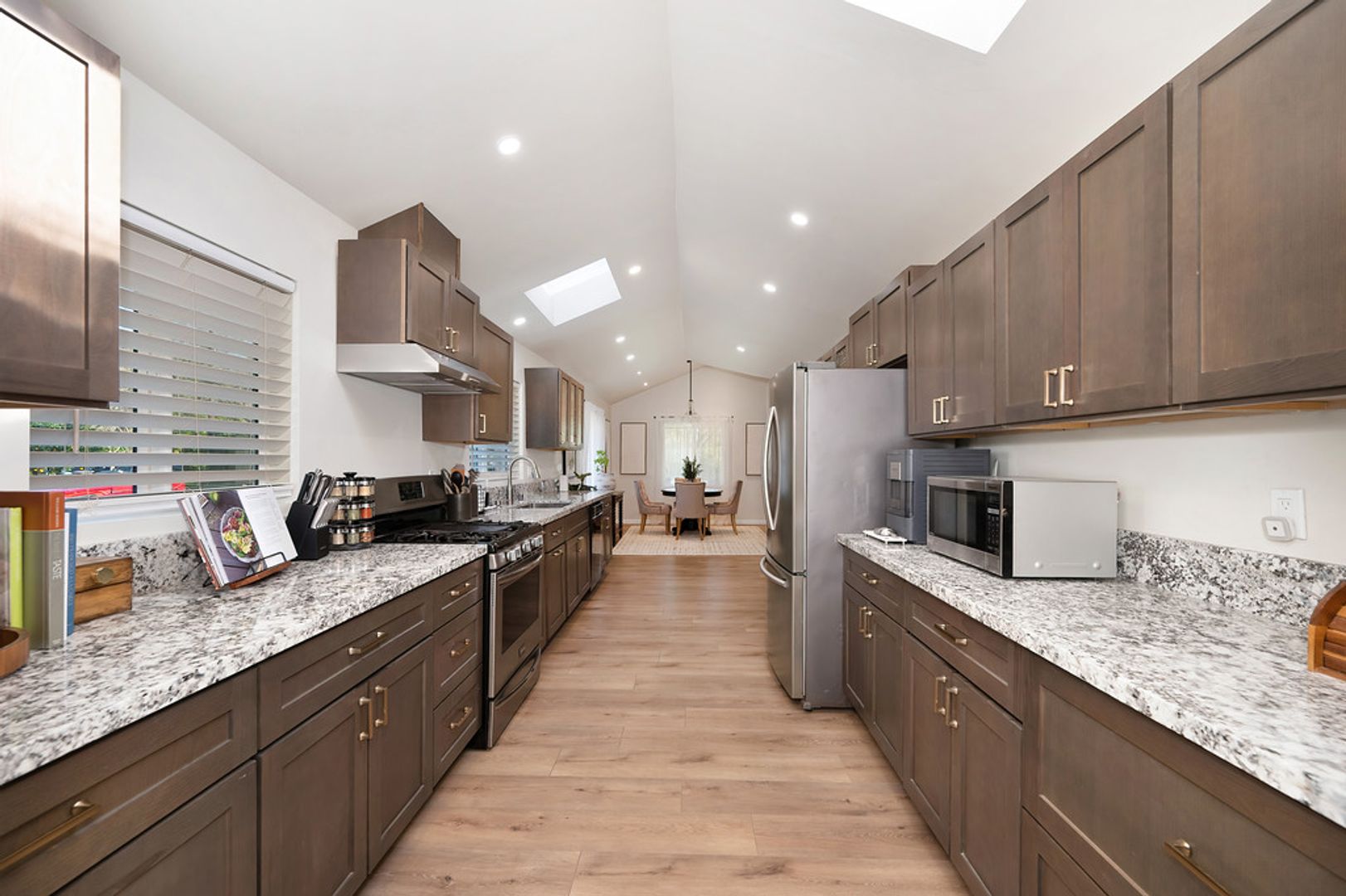 The open, light-filled floor plan features designer flooring, a beautifully updated kitchen with premium cabinetry, sleek countertops, and modern appliances, perfect for both everyday living and entertaining. Both bathrooms have been completely remodeled with spa-inspired finishes, offering a clean, luxurious feel.