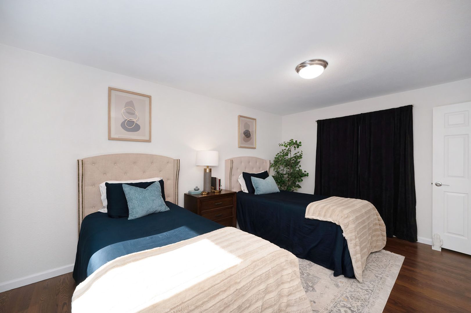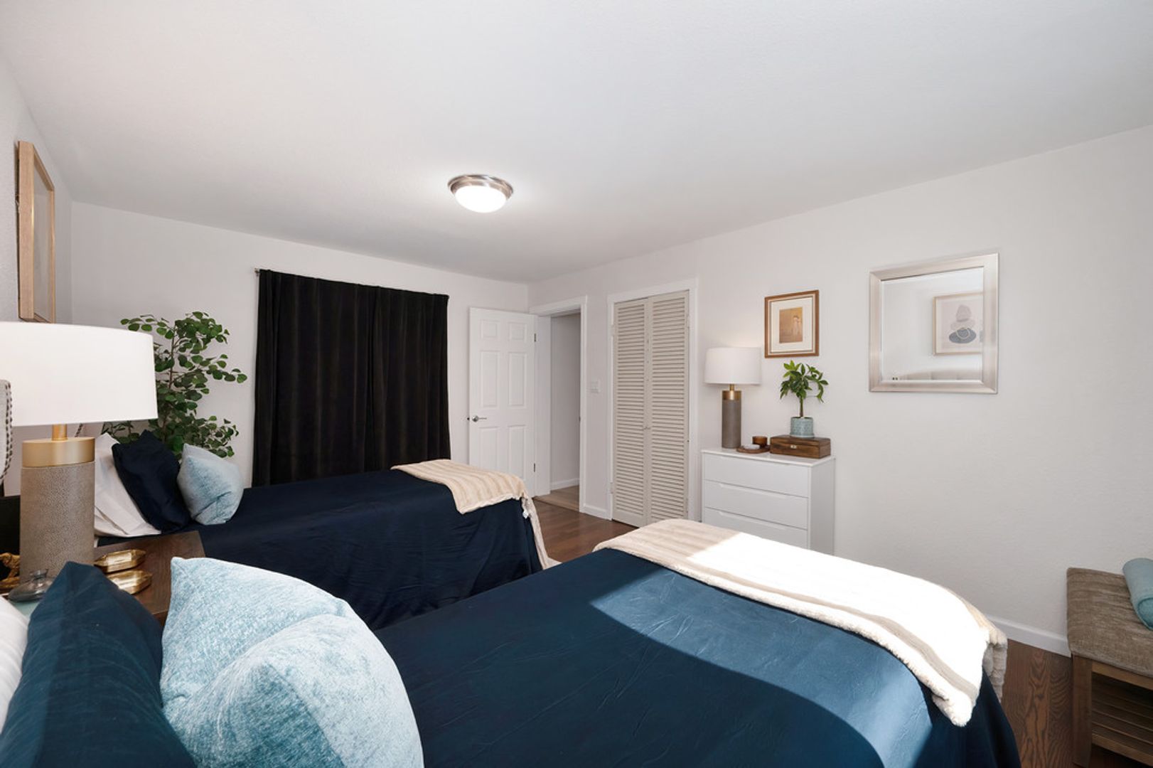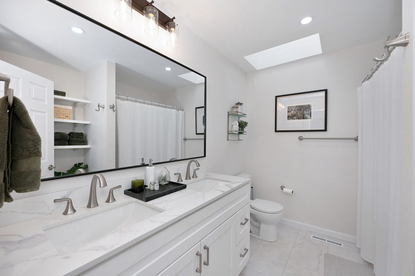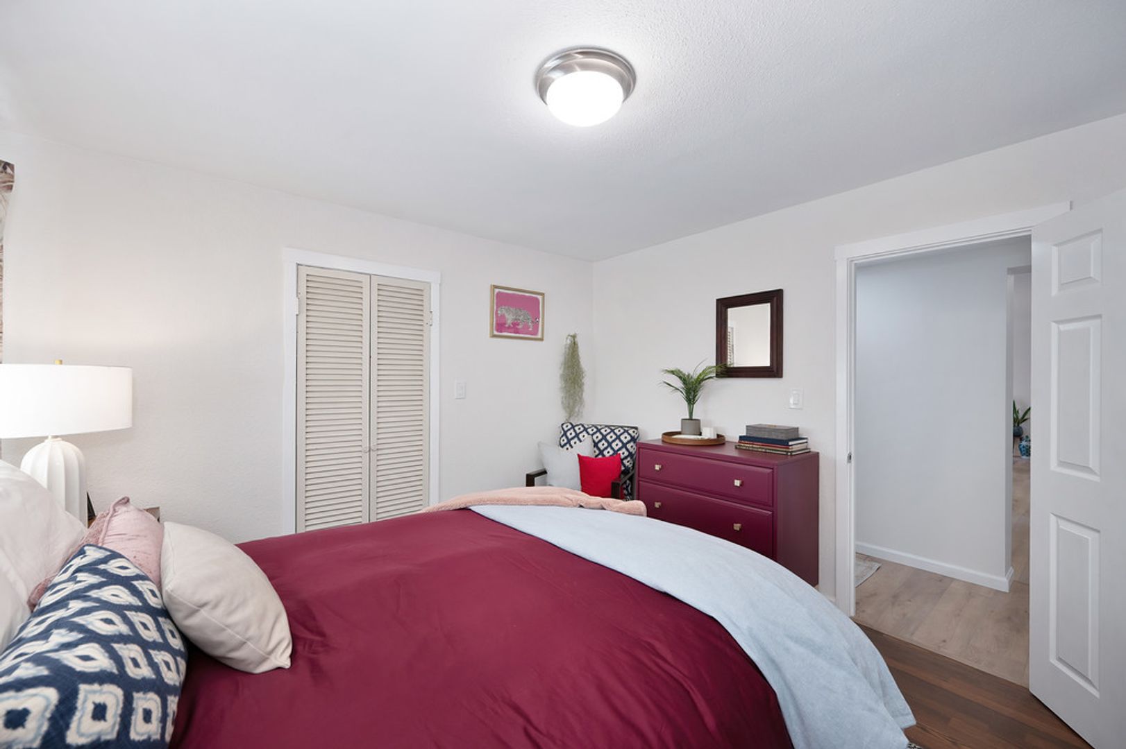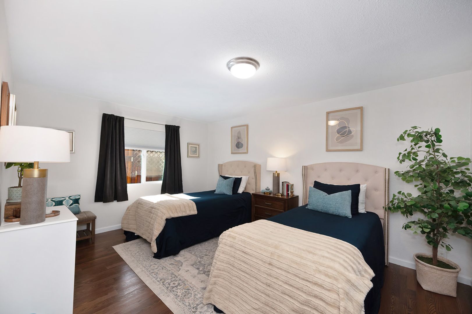 The open, light-filled floor plan features designer flooring, a beautifully updated kitchen with premium cabinetry, sleek countertops, and modern appliances, perfect for both everyday living and entertaining. Both bathrooms have been completely remodeled with spa-inspired finishes, offering a clean, luxurious feel.